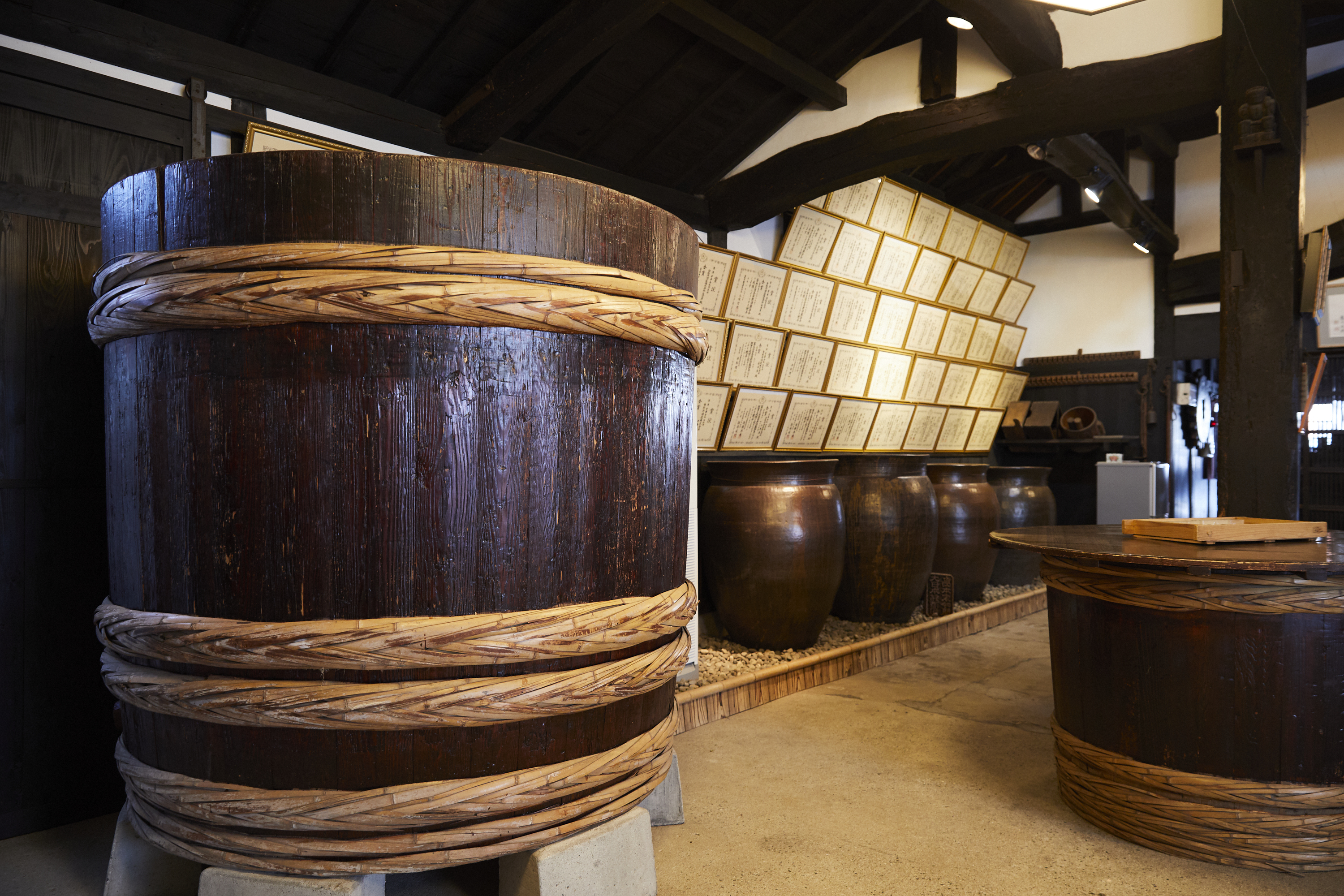 Its flavor has been cherished by many cultural figures, including literary giant Soseki Natsume and woodblock printmaker Shiko Munakata. The grounds feature the Enpokura (Enpo storehouse), the Tenpokura (Tenpo storehouse), and the exhibition room in the main office. In the exhibition room, visitors can view woodblock prints and labels created by Shiko Munakata for Hakubotan, along with tools used to brew sake. Visitors can also purchase products that are only available directly from the brewery, allowing you to enjoy a special moment where history and art converge.