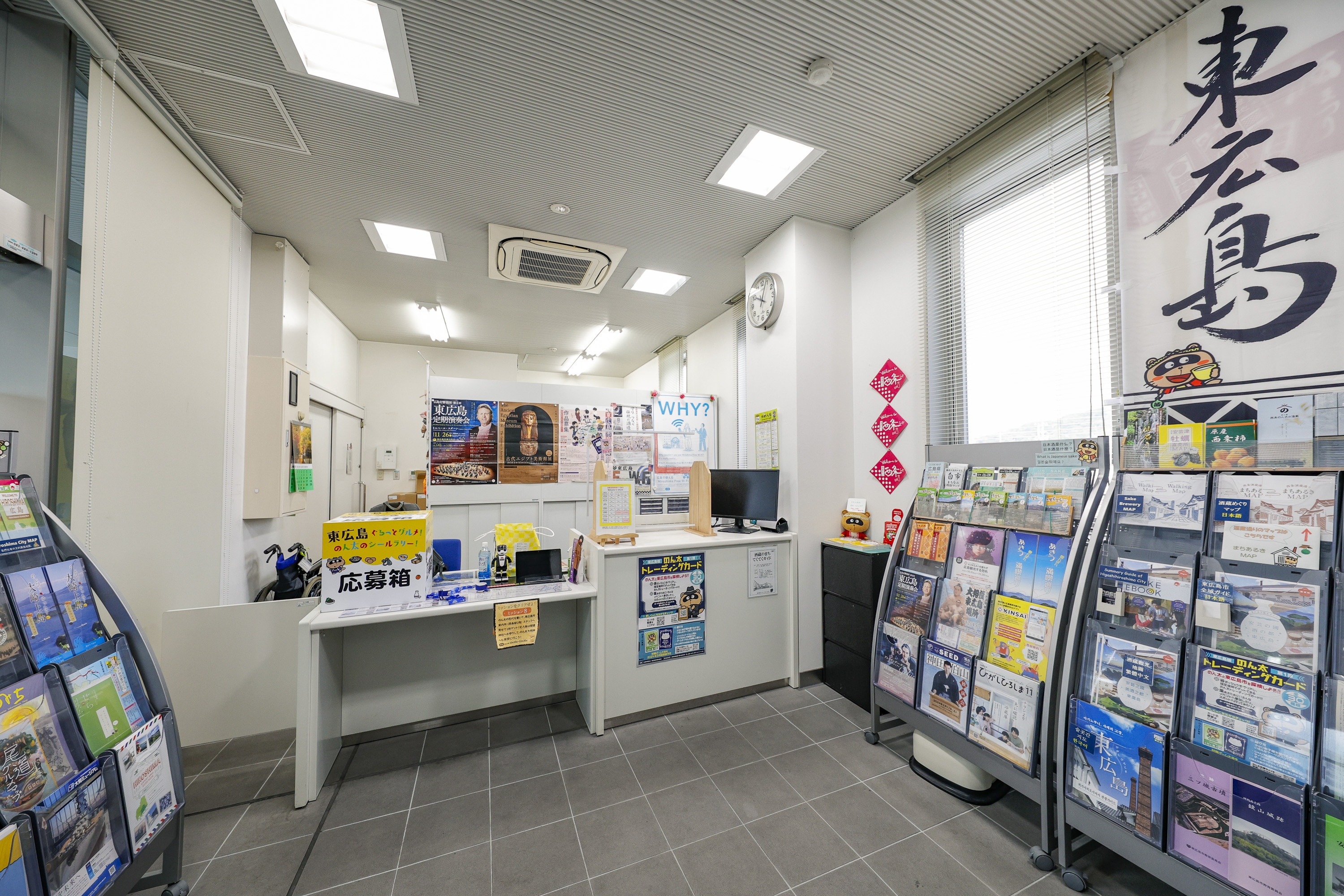 The Higashihiroshima City Tourist Information Center, located on the 2nd floor of JR Saijo Station, provides information on tourist attractions, restaurants, and souvenir shops for foreign visitors to Higashihiroshima. Multilingual maps and brochures in languages such as English and Chinese are also available.
