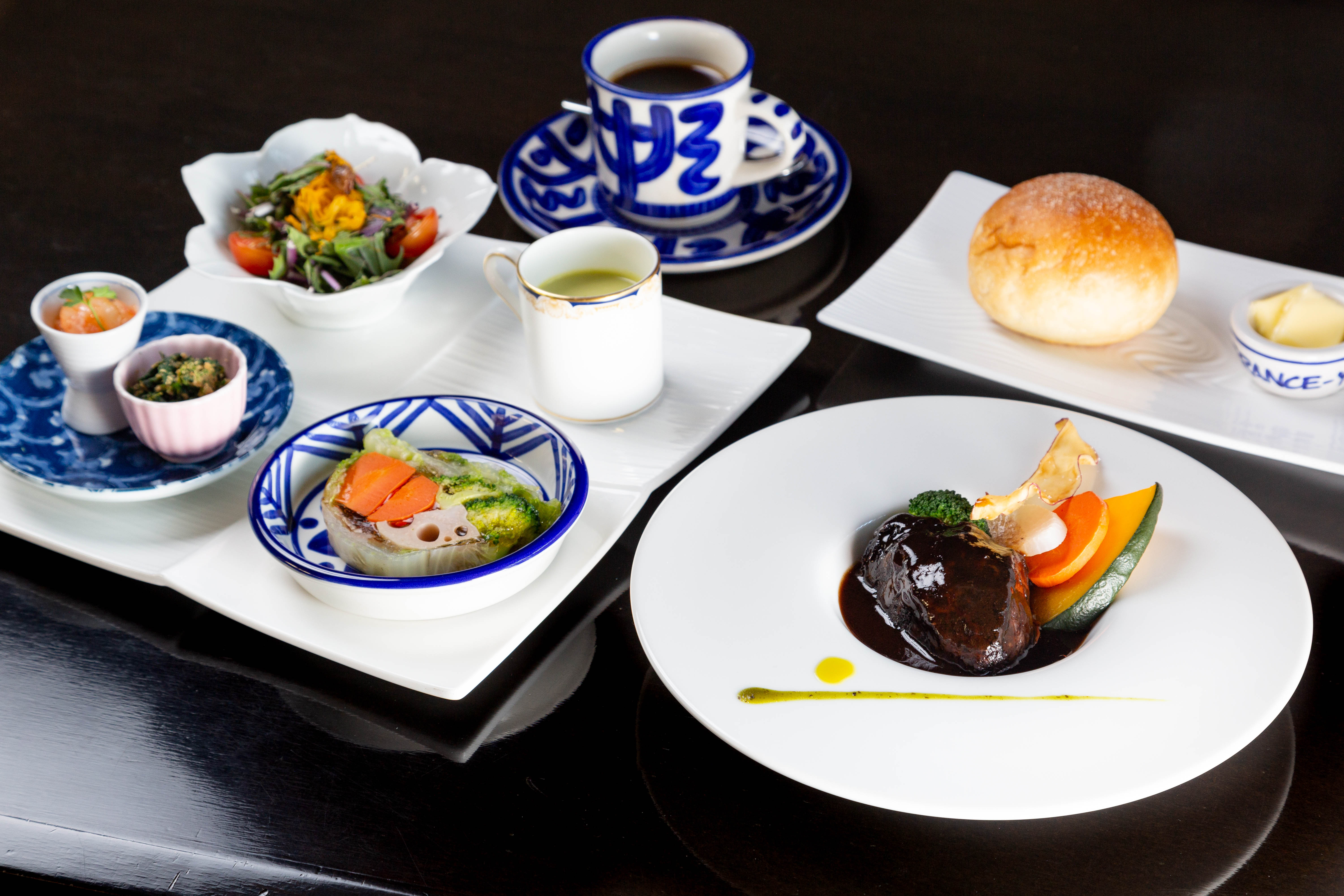 Savor meticulously crafted original dishes designed to enhance your sake experience, such as bishu-nabe — the original Kamotsuru hotpot prepared with sake — and Hiroshima beef cheek stew simmered in sake and red wine. There is also a wide selection of other seasonal Japanese and Western cuisine that pairs well with Kamotsuru sake.