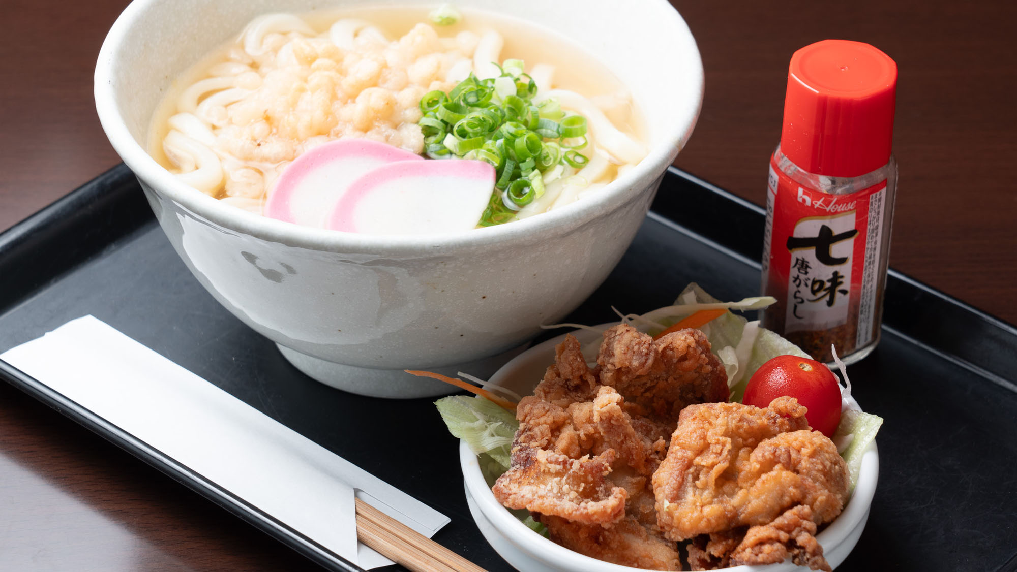 In addition to the local specialty komekara (fried chicken made with rice flour), the menu also offers original blend coffee, udon noodles, and curry. The daily lunch specials and desserts are also popular.