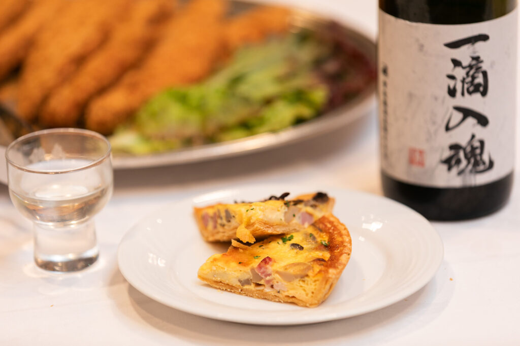 For example, “Itteki Nyukon,” a signature brand of “Kamotsuru,” was paired with a quiche specially made by the hotel. The rich buttery aroma enhances the savory depth of the rice in the sake, creating a harmonious and layered experience on the palate.