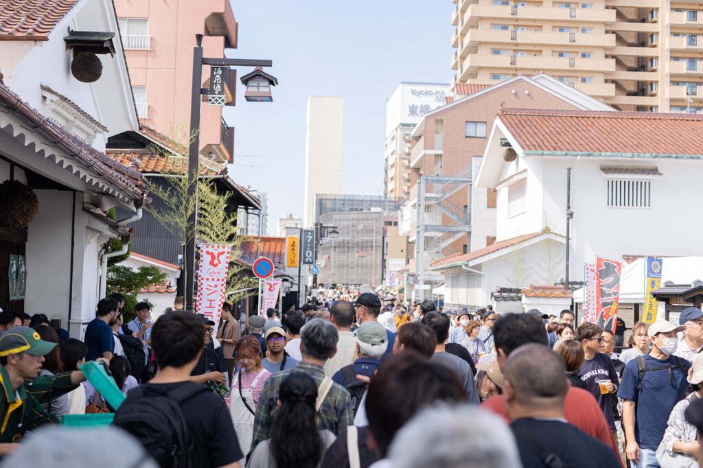 When you get off the train at the station, you can sense the aroma of sake and hear the sounds of laughter and “Kanpai (Cheers)!” from all directions on the streets. On this day, during this festival, the town of Saijo is truly the world’s “Sake Town.” Everyone who visits becomes captivated by sake.